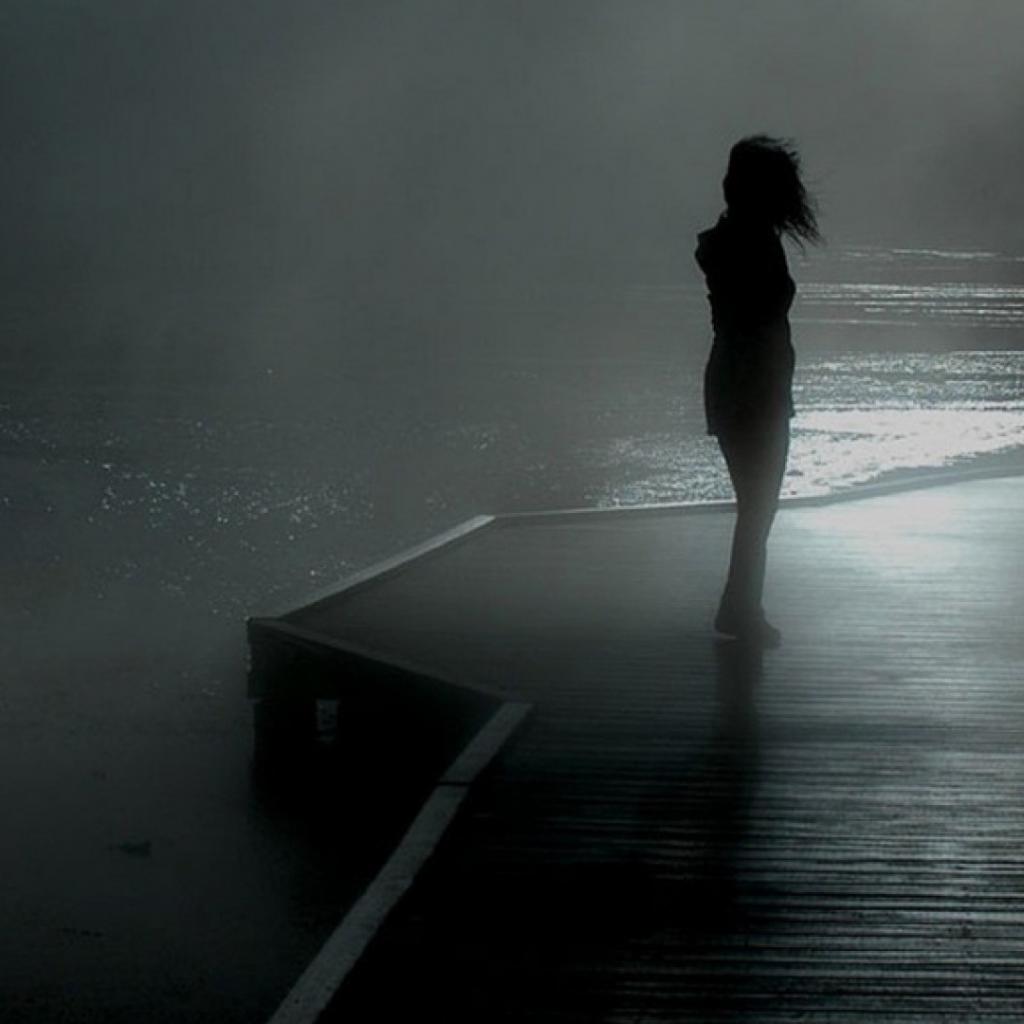 Wallpaper Girl on the dock in the fog