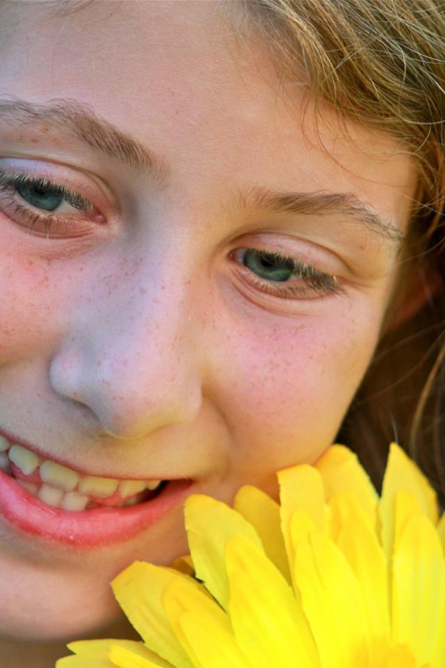 » Wallpaper Girl with freckles and a flower