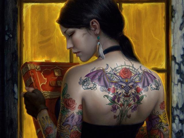 Wallpaper Girl tattoo with a book