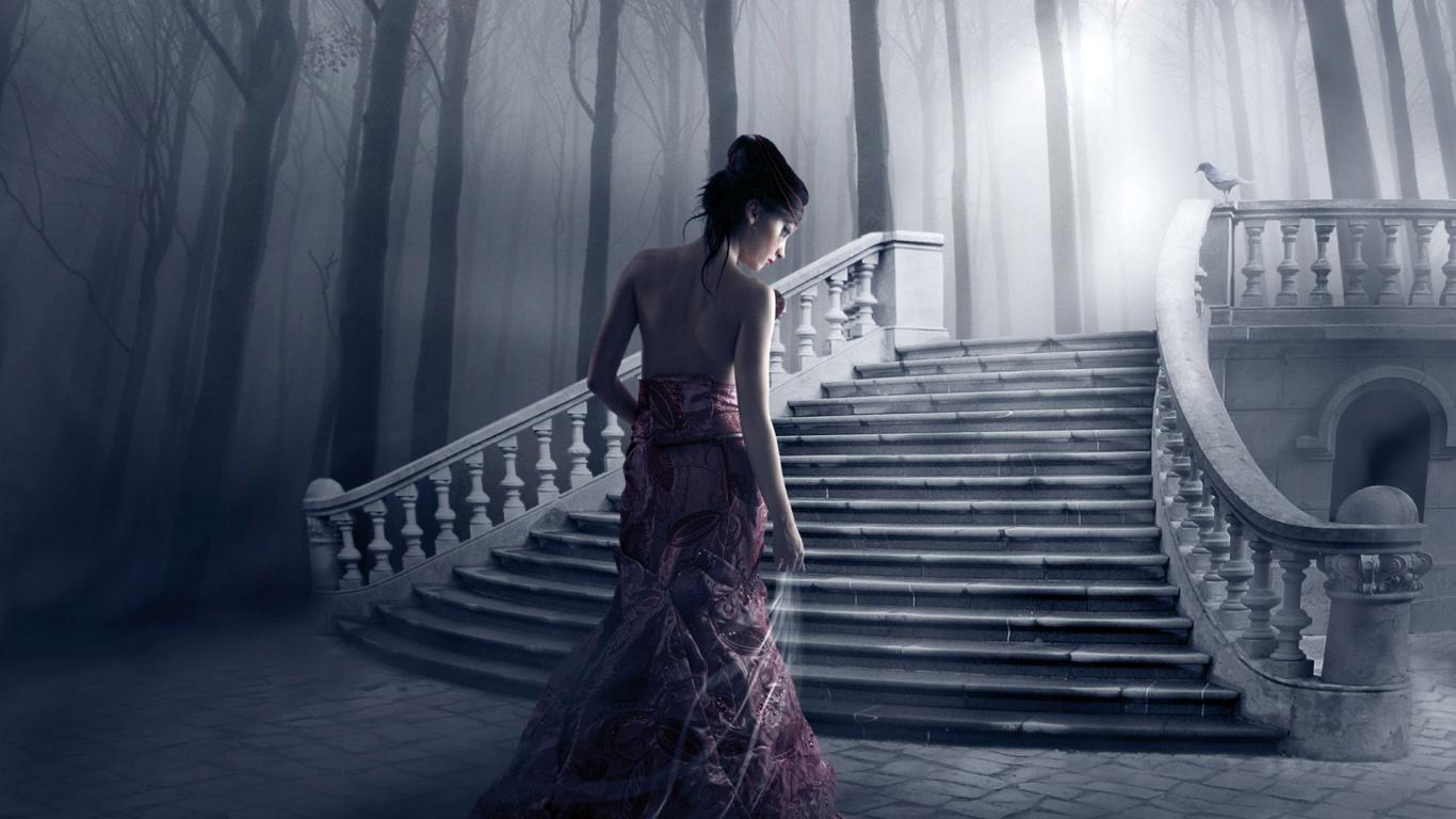 Wallpaper A girl in a dark garden