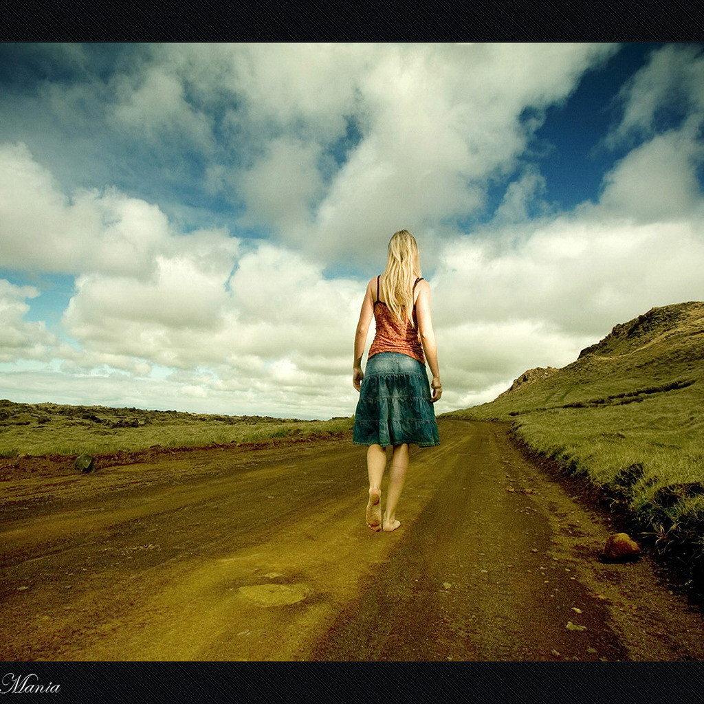 Wallpaper Barefoot girl on the road
