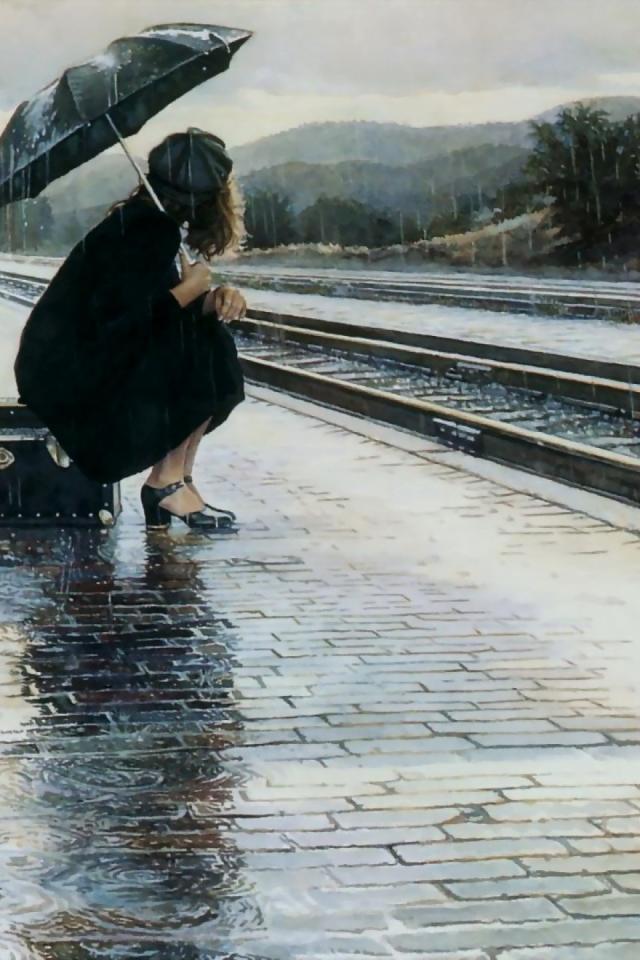Wallpaper Girl with umbrella on the platform