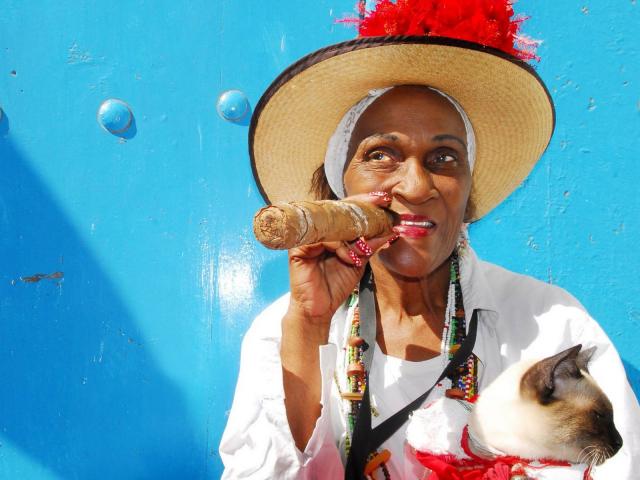 Wallpaper Grandma with a cat and a cigar