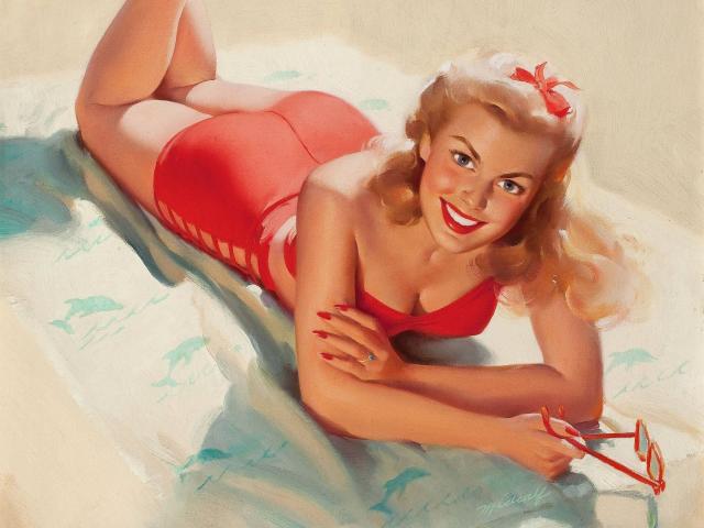 Wallpaper Girl in a red bathing suit, retro
