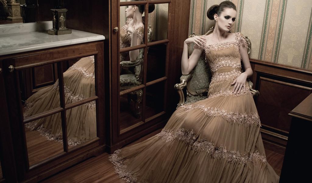 Wallpaper Brunette in an elegant dress