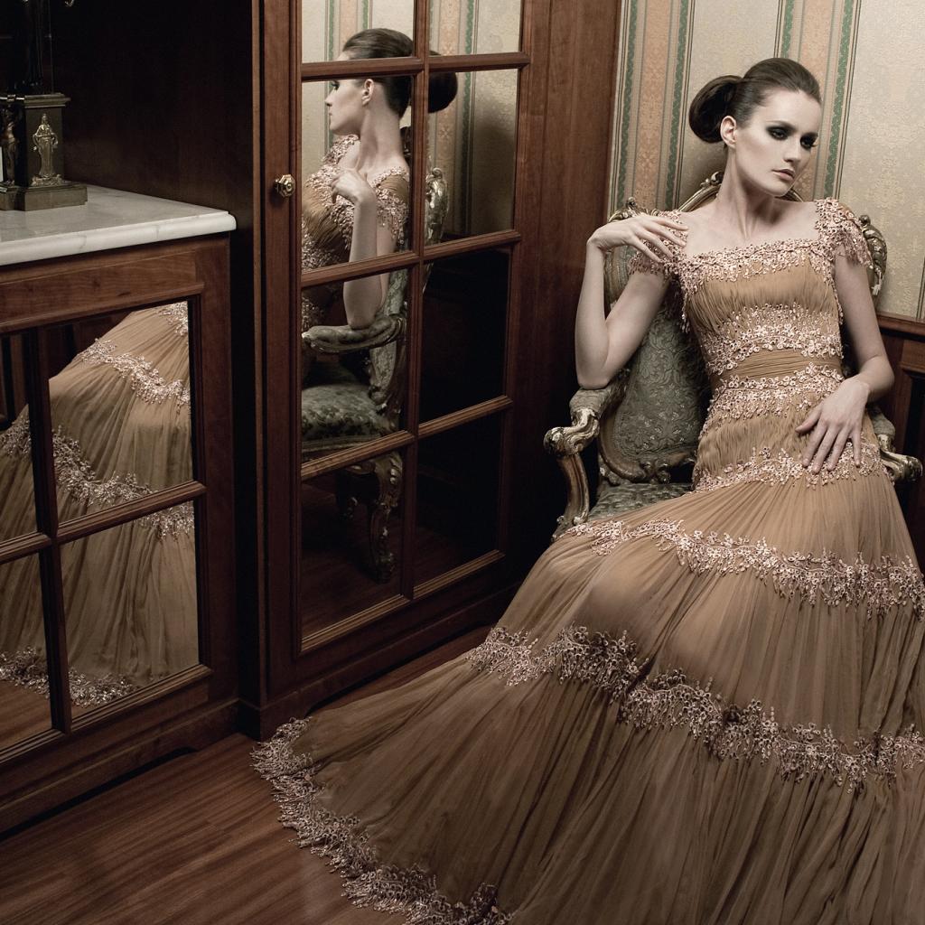 » Wallpaper Brunette in an elegant dress