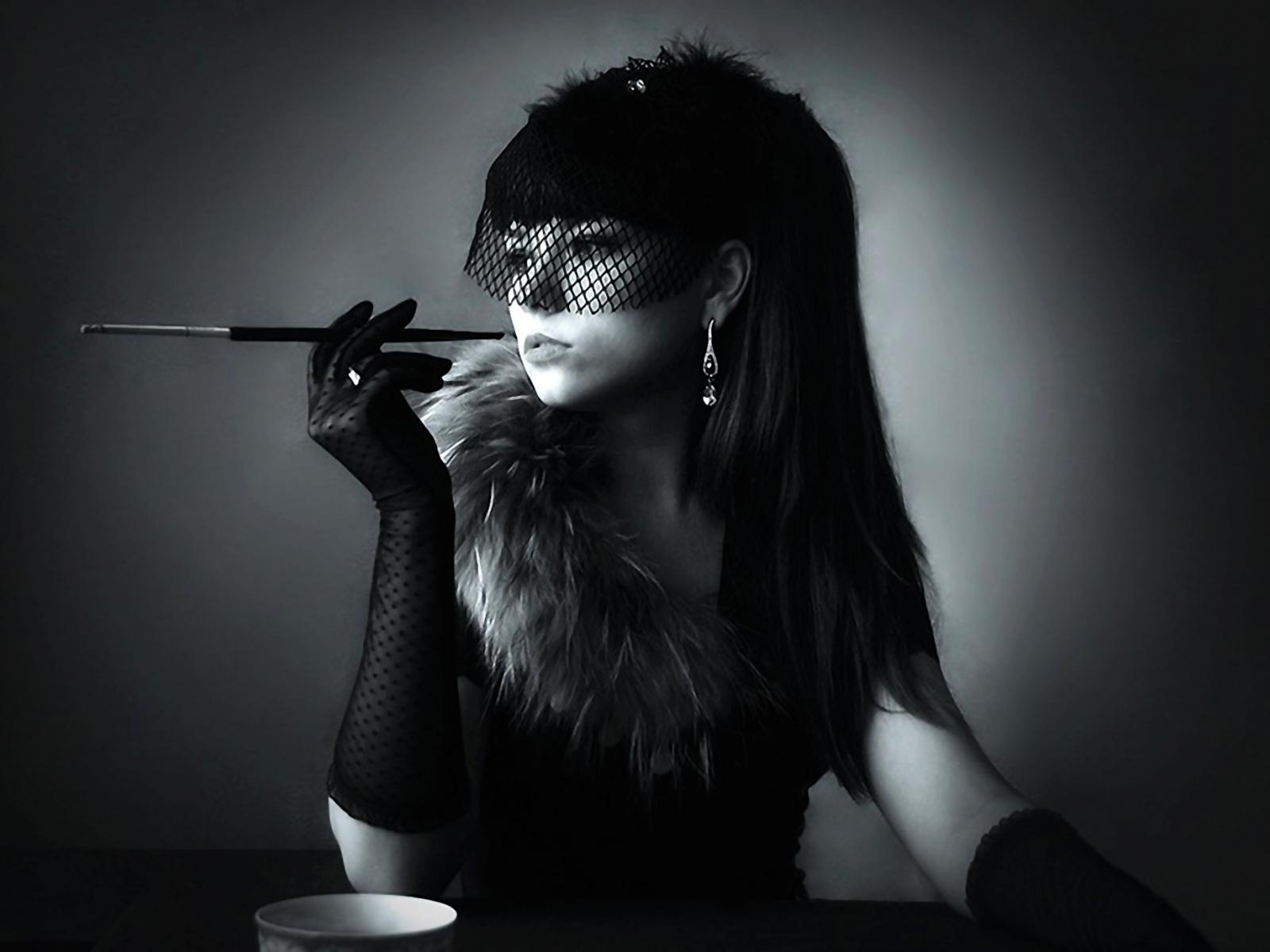» Wallpaper Smoking girl in retro style