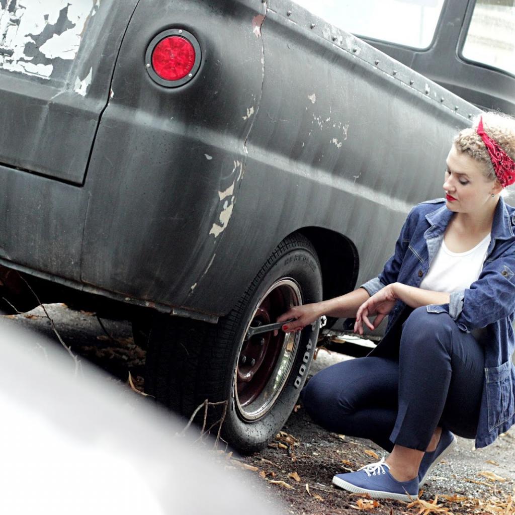 Wallpaper The girl repairing the car