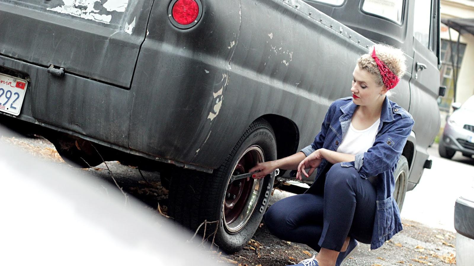 Wallpaper The girl repairing the car