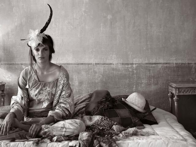 Wallpaper Girl on the bed, retro