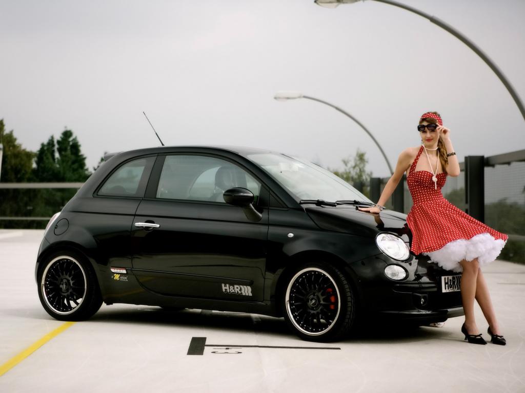 Wallpaper Girl near red retro car