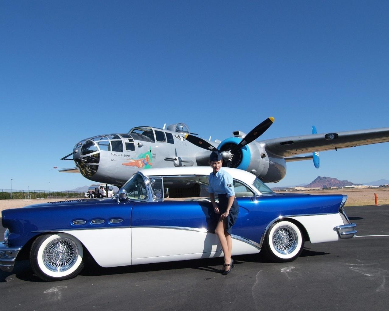 Wallpaper Stewardess near retro car