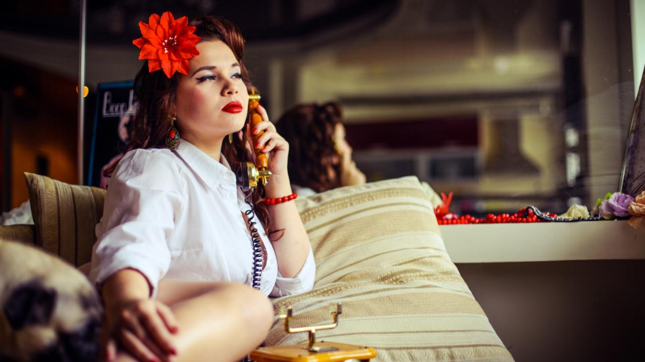 Wallpaper Girl and retro phone