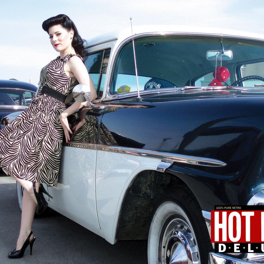 Wallpaper Pin Up girl near retro car from the past