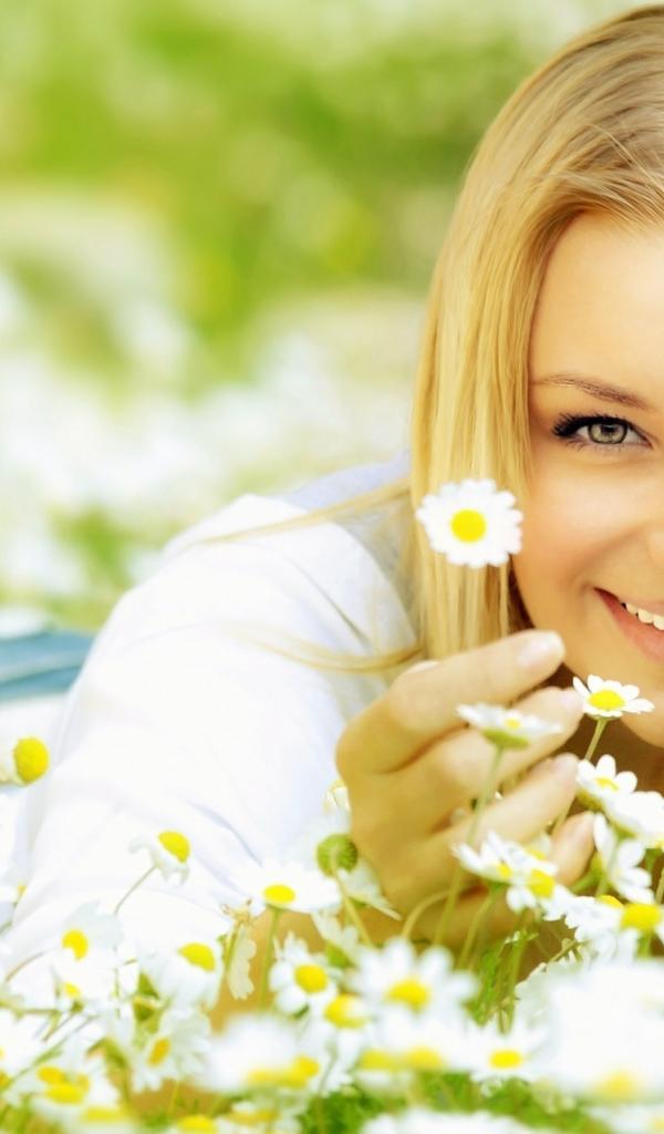 Wallpaper Blonde lies in the daisies