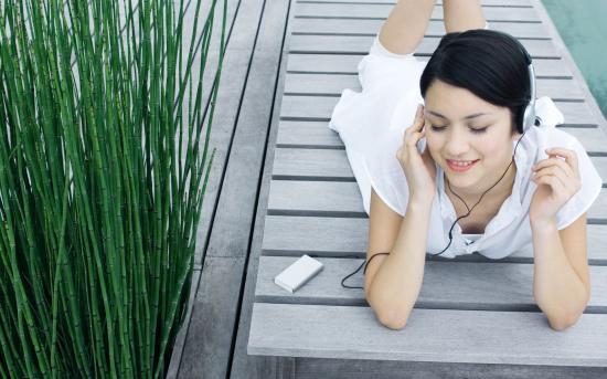 Wallpaper The girl in the white dress listening to music