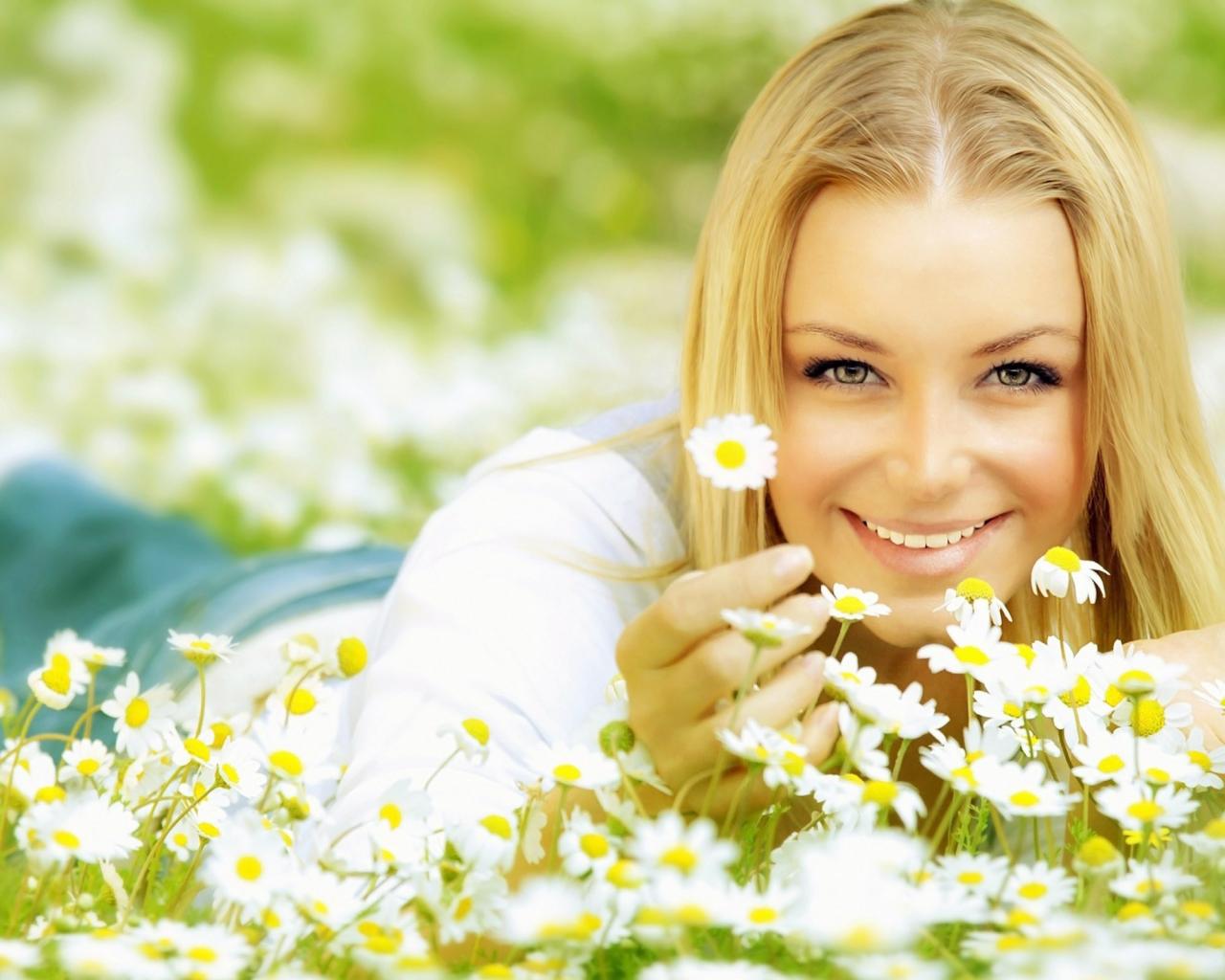 Wallpaper Blonde in camomiles