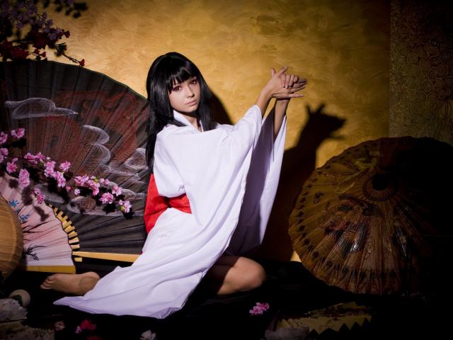Wallpaper Japanese figure shows in the theater of shadows