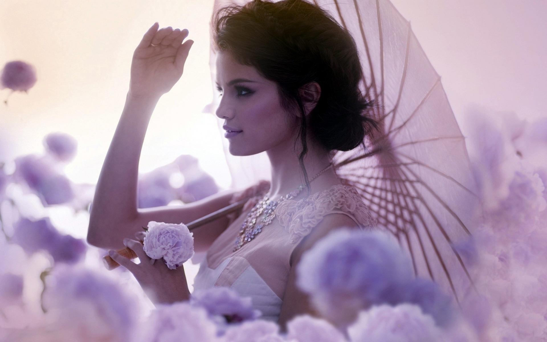 Wallpaper Selena Gomez with umbrella