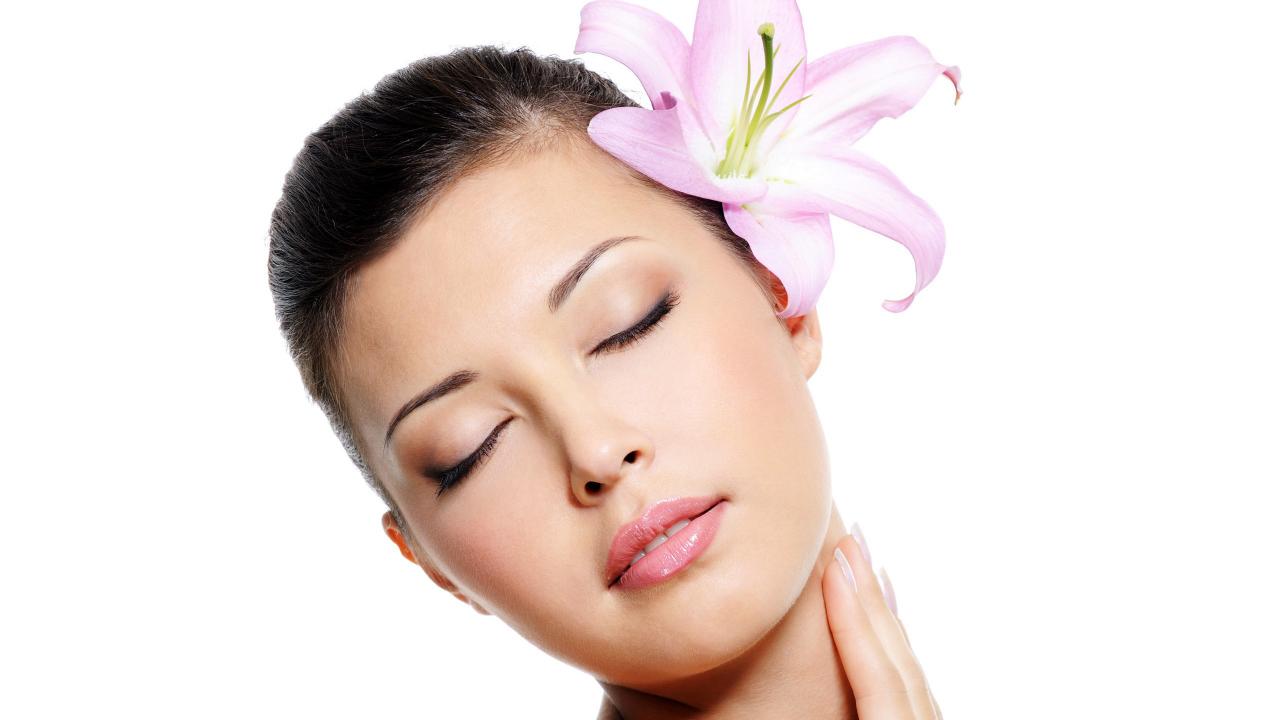 Wallpaper Brunette with a Lily