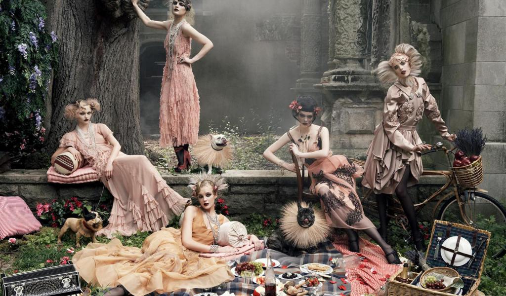 Wallpaper Girls on a picnic