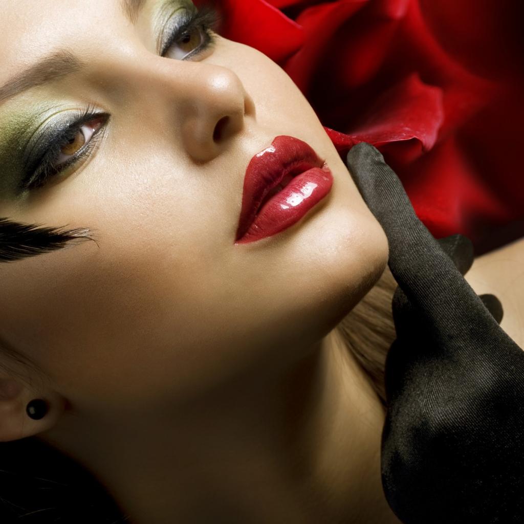 Wallpaper Brunette with pink lips