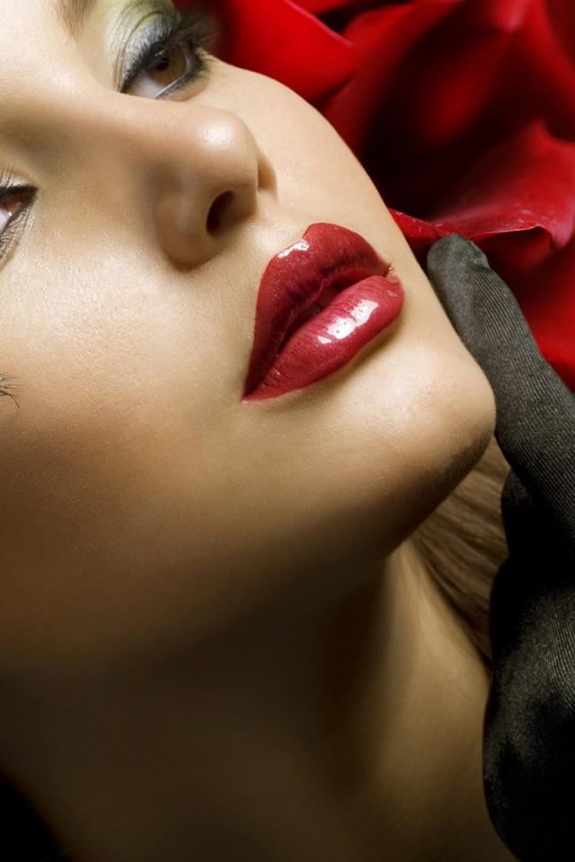 Wallpaper Brunette with pink lips