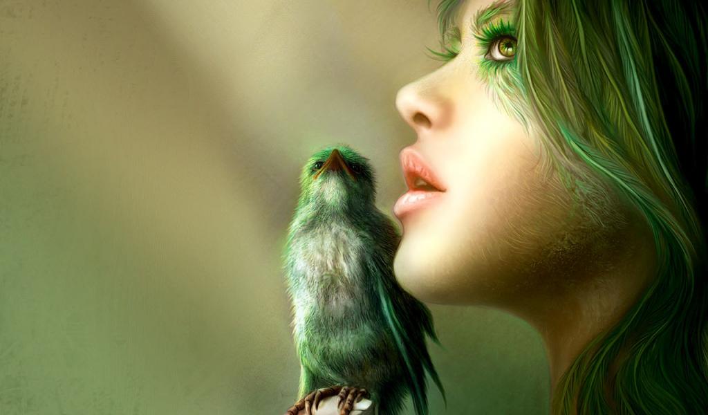 Wallpaper The bird on the hand of a girl in an anime TV Vys