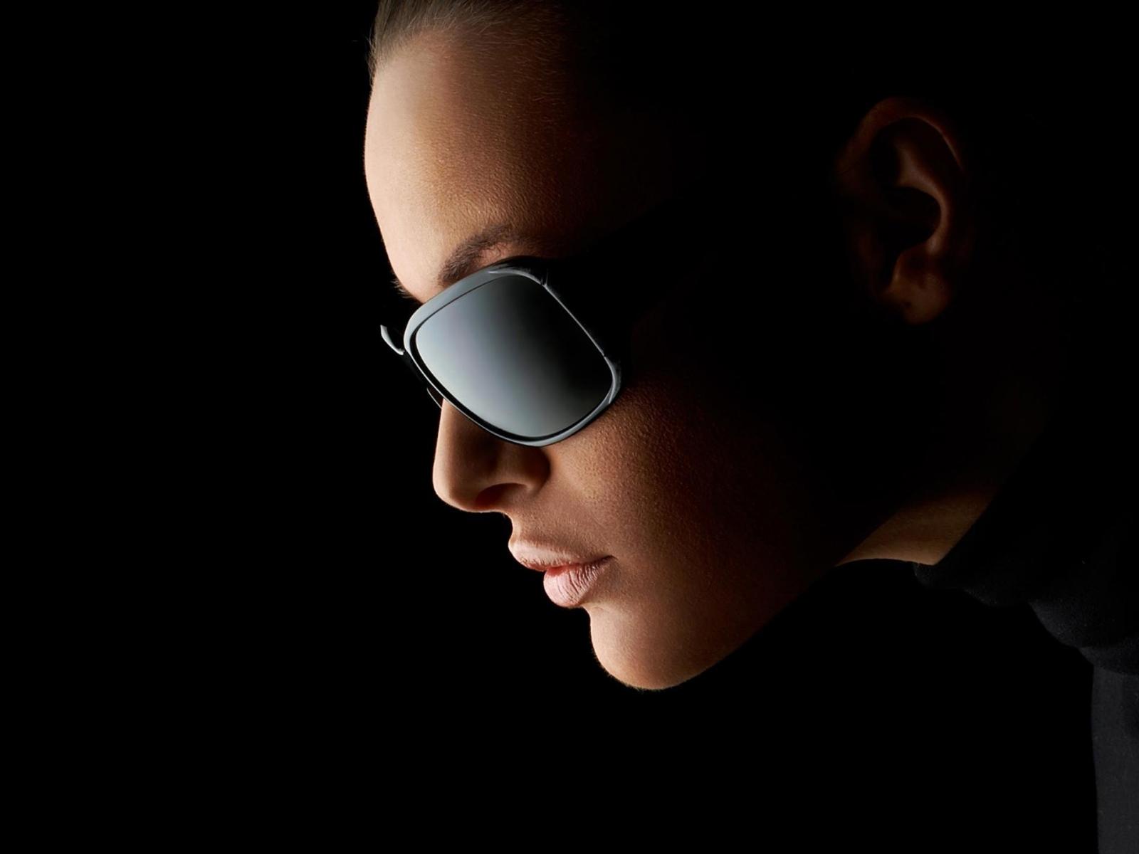 Wallpaper The girl in sunglasses and black headphones