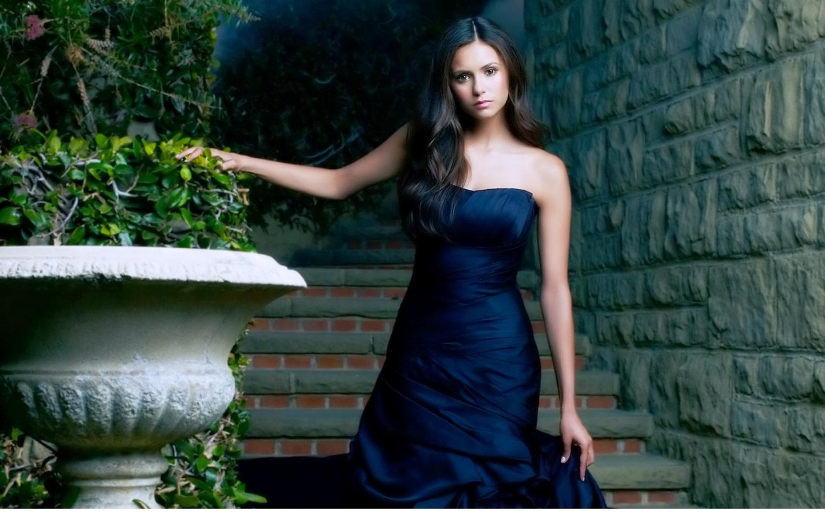 Wallpaper Actress Nina Dobrev in a blue dress
