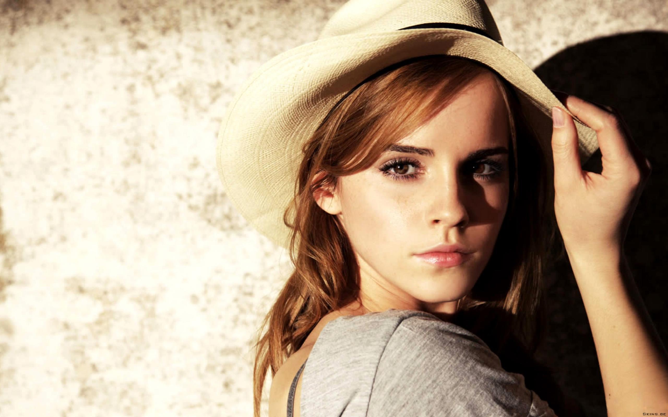 Wallpaper Actress Emma Watson in a white hat