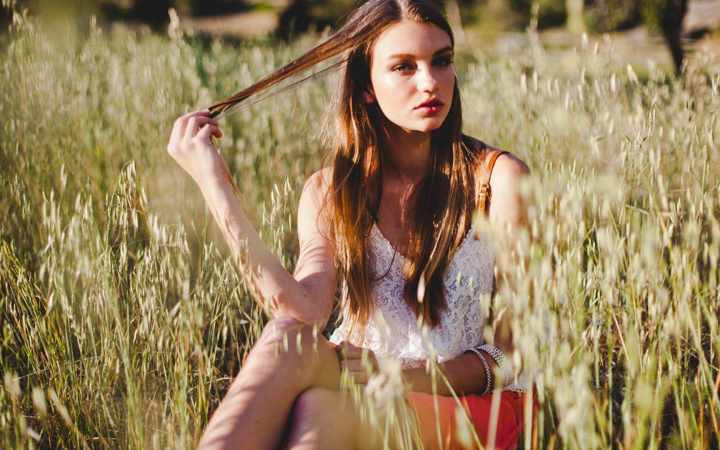 Wallpaper Brunette on the field