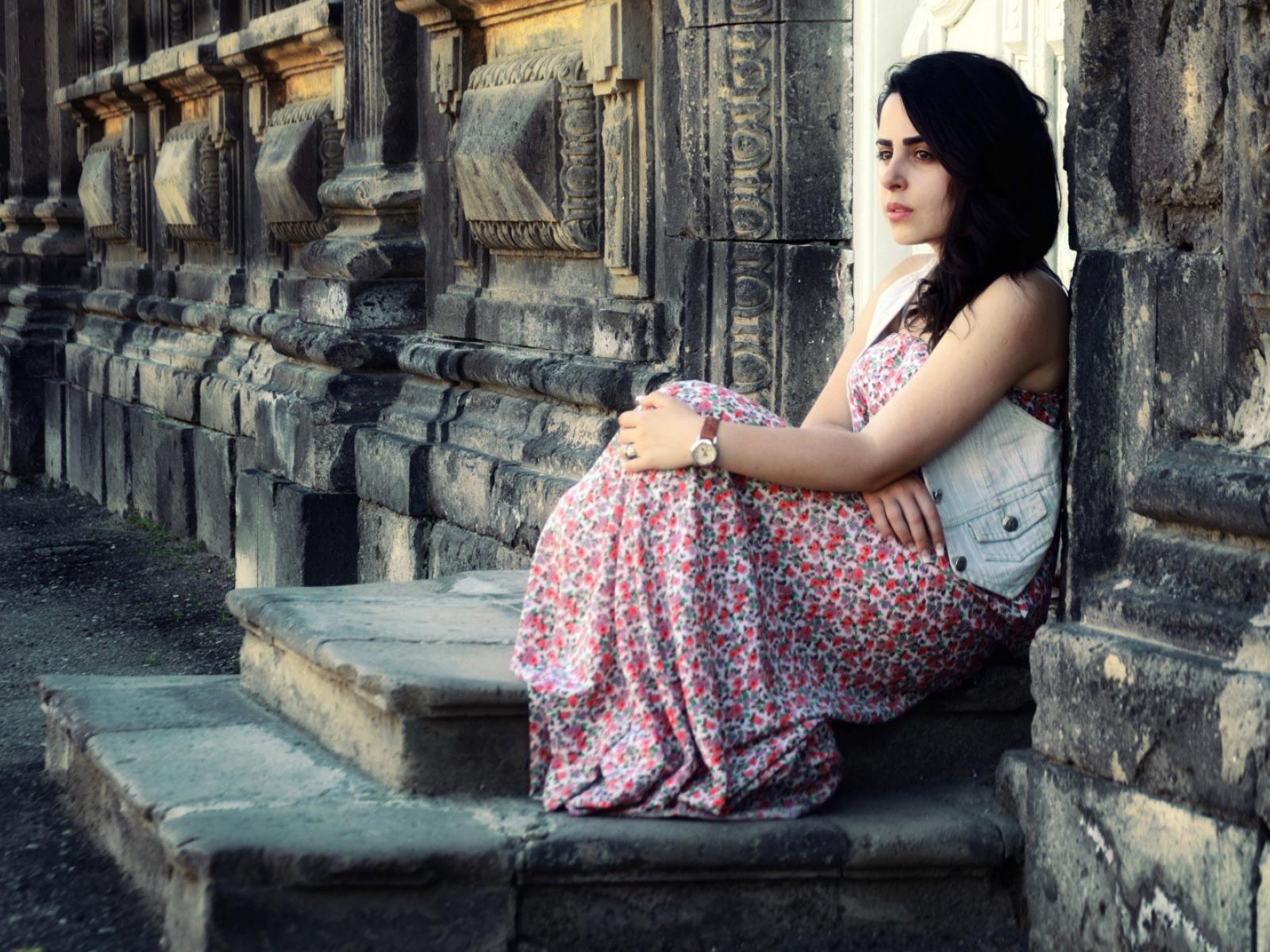Wallpaper Girl sits on the porch