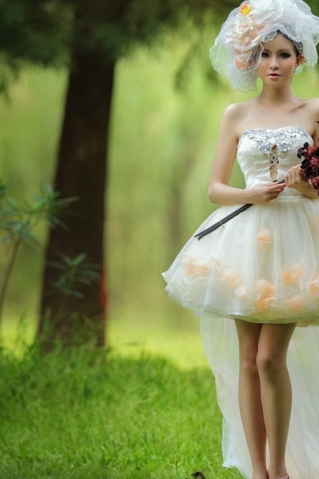 Wallpaper Bride with a bouquet of red