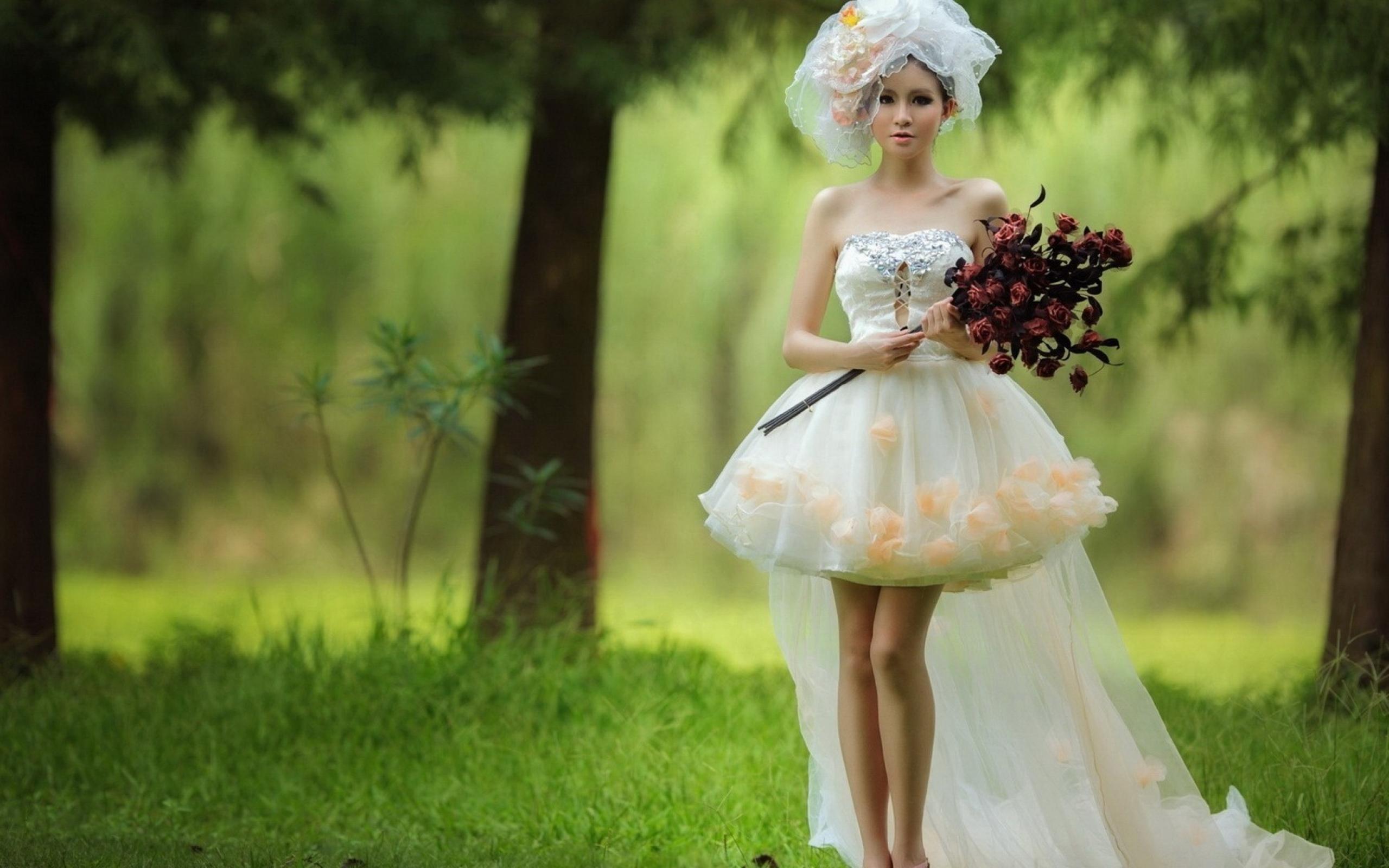 Wallpaper Bride with a bouquet of red