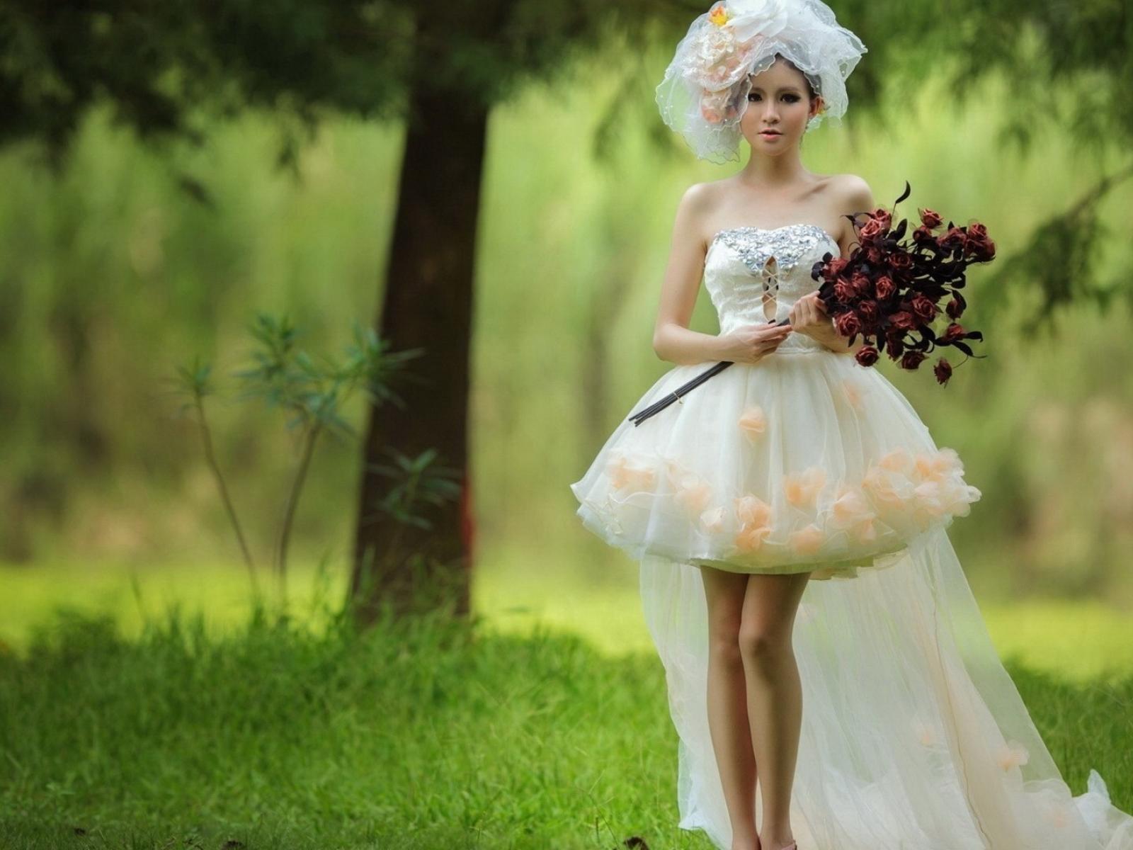 Wallpaper Bride with a bouquet of red