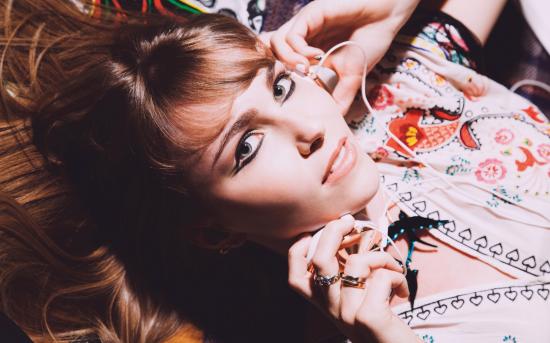 Wallpaper Girl lies with headphones