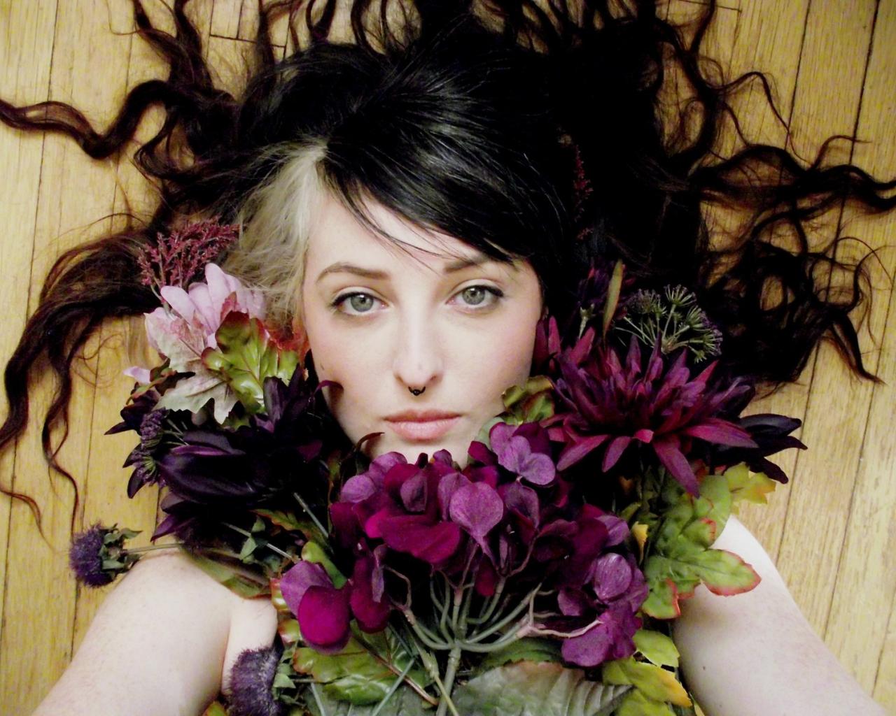 » Wallpaper girl with piercing with flowers