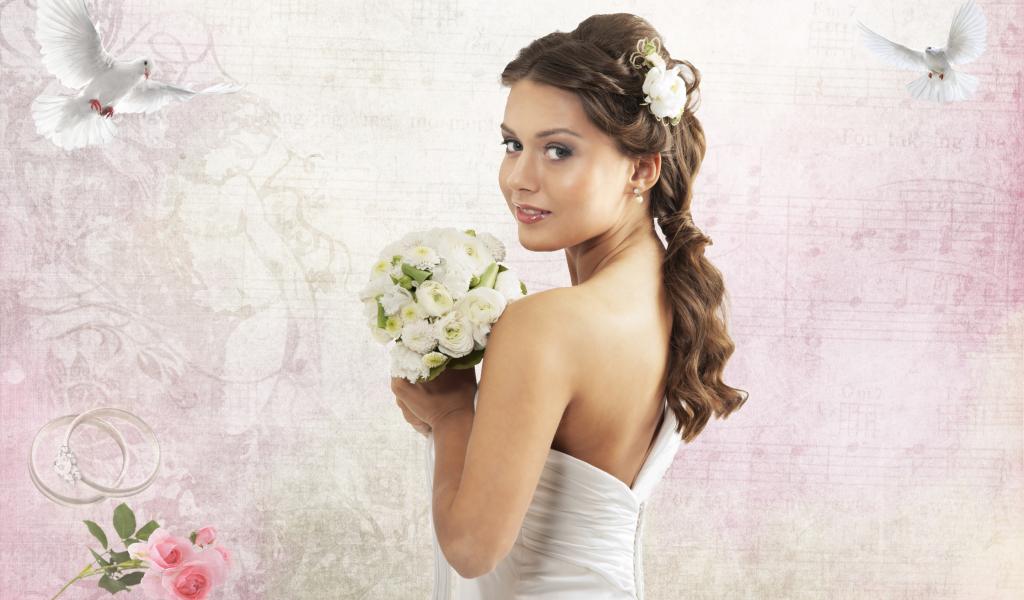 Wallpaper Pigeons, marriage, bouquet, Bride