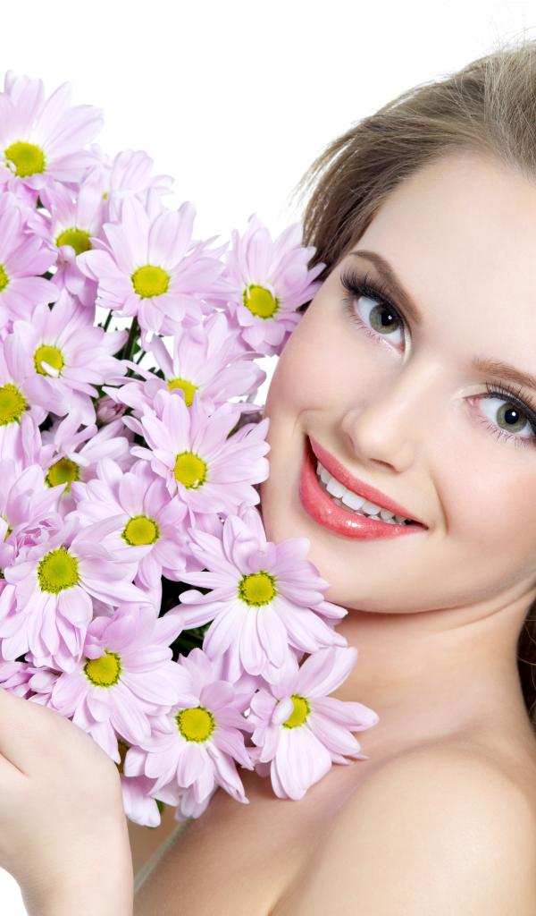 Wallpaper Smile, Face, Daisies, Bouquet of daisies, Glamorous