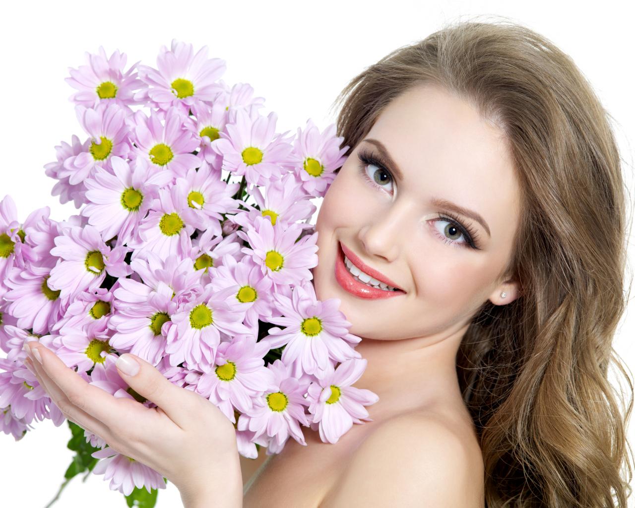 Wallpaper Smile, Face, Daisies, Bouquet of daisies, Glamorous