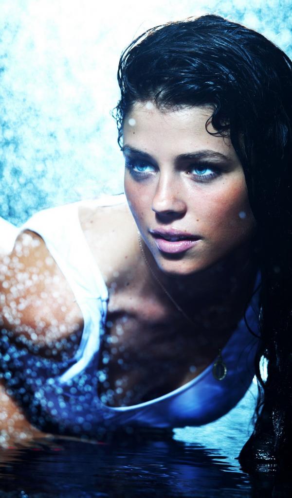 Wallpaper Green-eyed brunette is in the shower