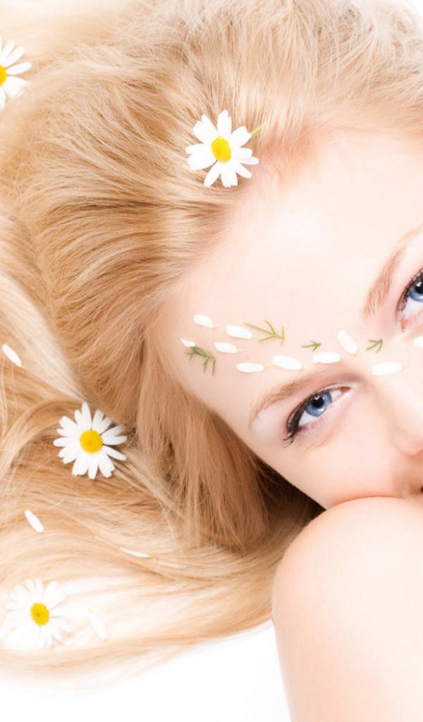 Wallpaper With camomiles in hair