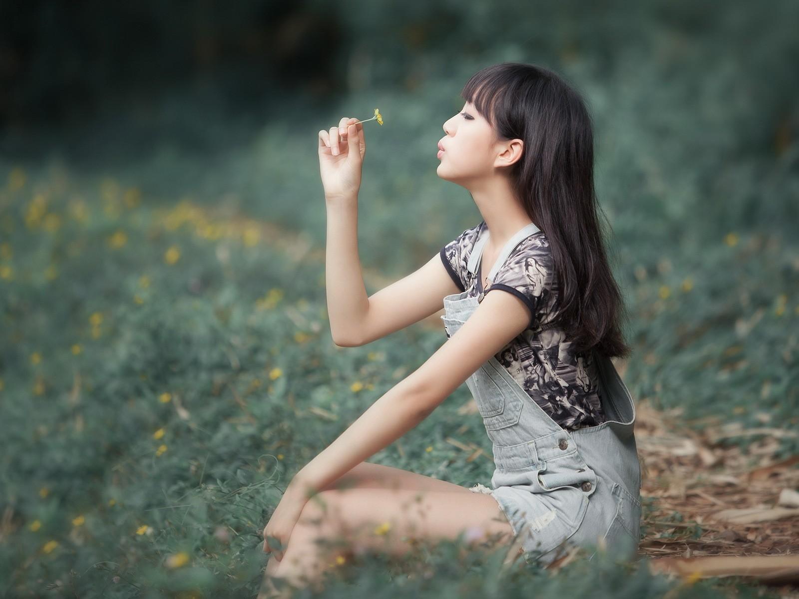Wallpaper Asian model with yellow flower