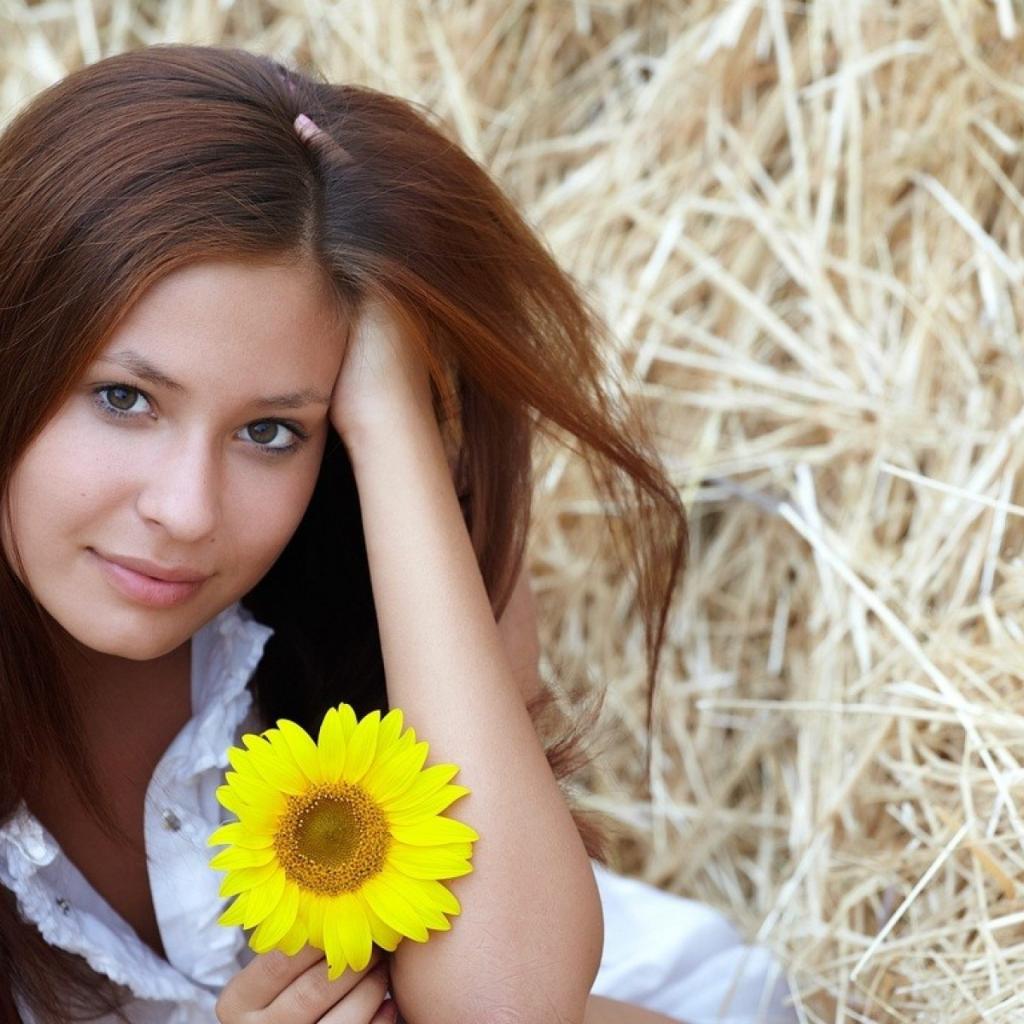 Wallpaper Girl with yellow flower