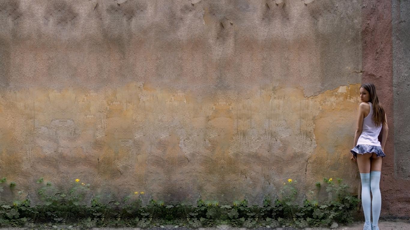 Wallpaper Girl in mini skirt