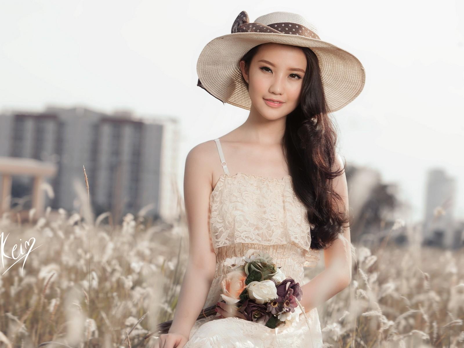 Wallpaper An Asian woman in a hat