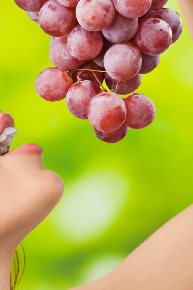 Wallpaper Girl with a red grapes