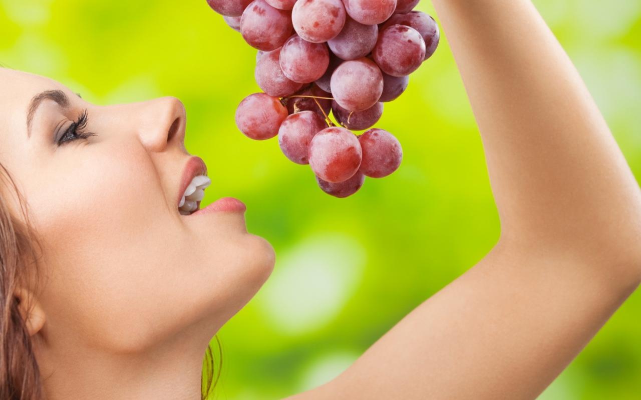 Wallpaper Girl with a red grapes