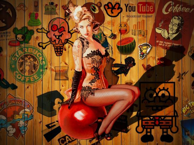 Wallpaper The model on the background of advertising